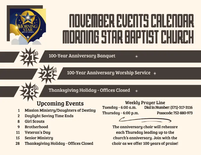 We, the members of Morning Star Baptist Church, seek to provide meaningful worship services as a vital part of the church. Through our church activities and in our lives we shall reach out and seek to bring others to Christ. We expect to grow through the study of the Bible, through prayer, and through participation in activities of service and fellowship. We shall be caring and concerned for each other, providing support and understanding in times of sadness and of joy. To support the mission of our church, we shall give willingly of both our finances and our talents.